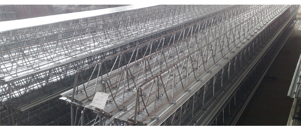 筋桁架樓板是將樓板中的鋼筋在工廠加工成鋼筋桁架,并將鋼筋桁架與鍍鋅壓型鋼板焊成一體的組合模板。